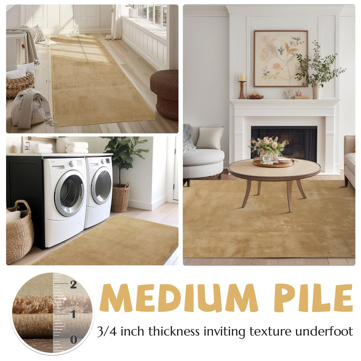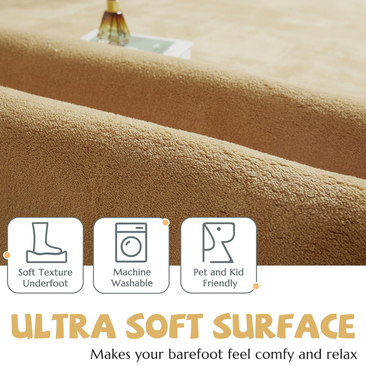 Q: What materials are used in the jinchan Solid Plush Area Rug?A: This rug is crafted from high-quality faux wool material, offering an ultra-soft feel underfoot while being more durable than natural fiber rugs.