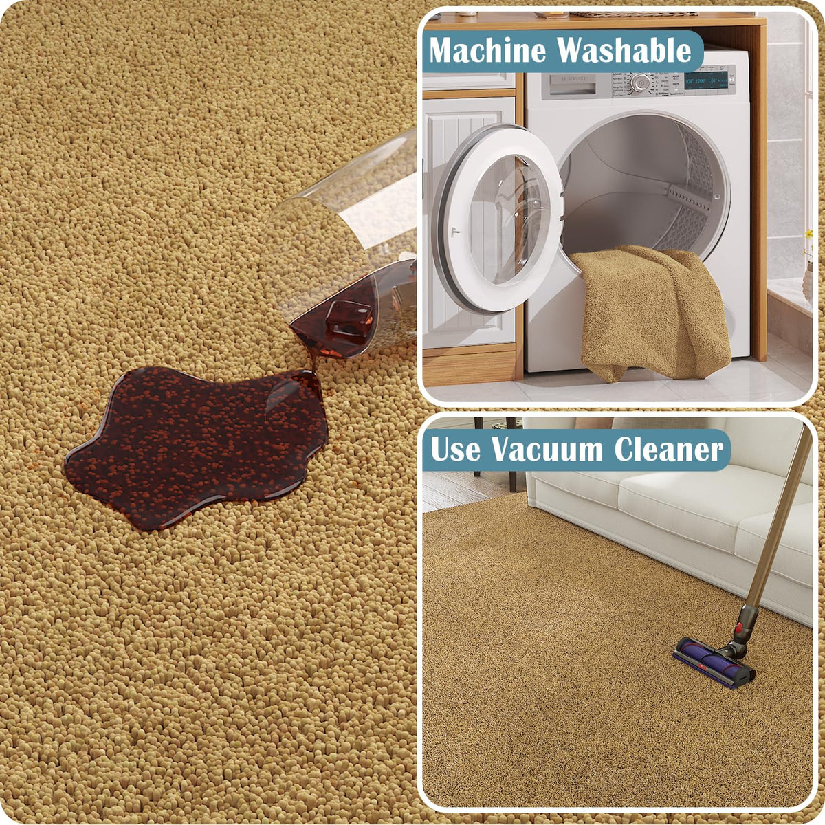 Q: How do I clean the jinchan Solid Plush Area Rug?A: Cleaning the jinchan rug is easy as it is machine washable. For regular maintenance, simply vacuum or shake off dirt and debris. For spot cleaning, use a mild detergent and follow the care instructions.