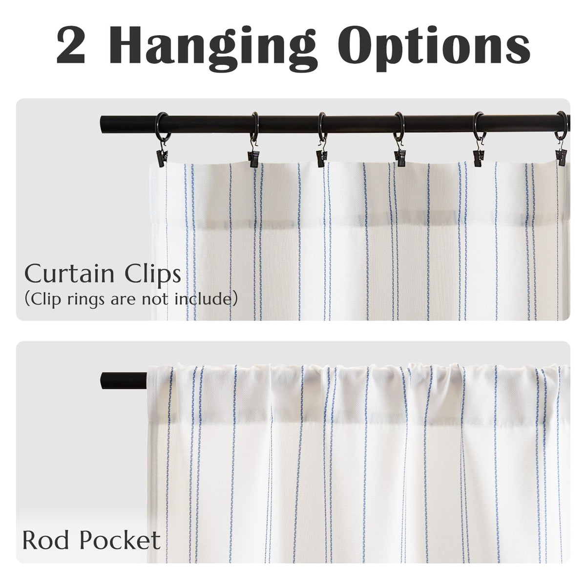 New Kitchen Curtains Are Here - Just In Time For Summer! Well-Made Valance: These Linen Look Tiers Are Sold In 2 Panels Measuring 25-Inch Width By 24-Inch Length. Refresh The Appearance Of Your Windows With Our Simple White Small Curtains. Light Filtering Panels: Our Striped Cafe Curtains With Substantial Texture, They Can Diffuse Most Harsh Light In The Day Time While Offering Sufficient Privacy. Stylish Chalk Print Combined With Linen Look Fabric, They Visually Give A Touch Of Neutrality And Simplicity To Your Home. Enjoy A Serene And Cozy Ambiance With Our Short Window Treatments! Small Window Curtains:Our Curtains For Small Windows Are The Perfect Partner For Your Kitchen, Living Room, Dining Room, Bathroom, Laundry Room, Bedroom, Basement, Rv, Bay Window And Camper. Wide Application: These Modern Farmhouse Style Curtains Are Easy To Install And Maintain. Suitable For Rustic, Cottage,Vintage, Coastal, Nautical Styles. Decorate Your Home With Chalk Striped Curtains! Easy Care Window Treatments: Our Window Treatments Are Durable Thanks To Sturdy Fabric. Machine Washable In Cold Water In Gentle Circle And Tumble Dry On Low. Do Not Bleach. Creases On The Valance Curtain From Packing And Shipping Can Be Pressed By Ironing Or Steaming.