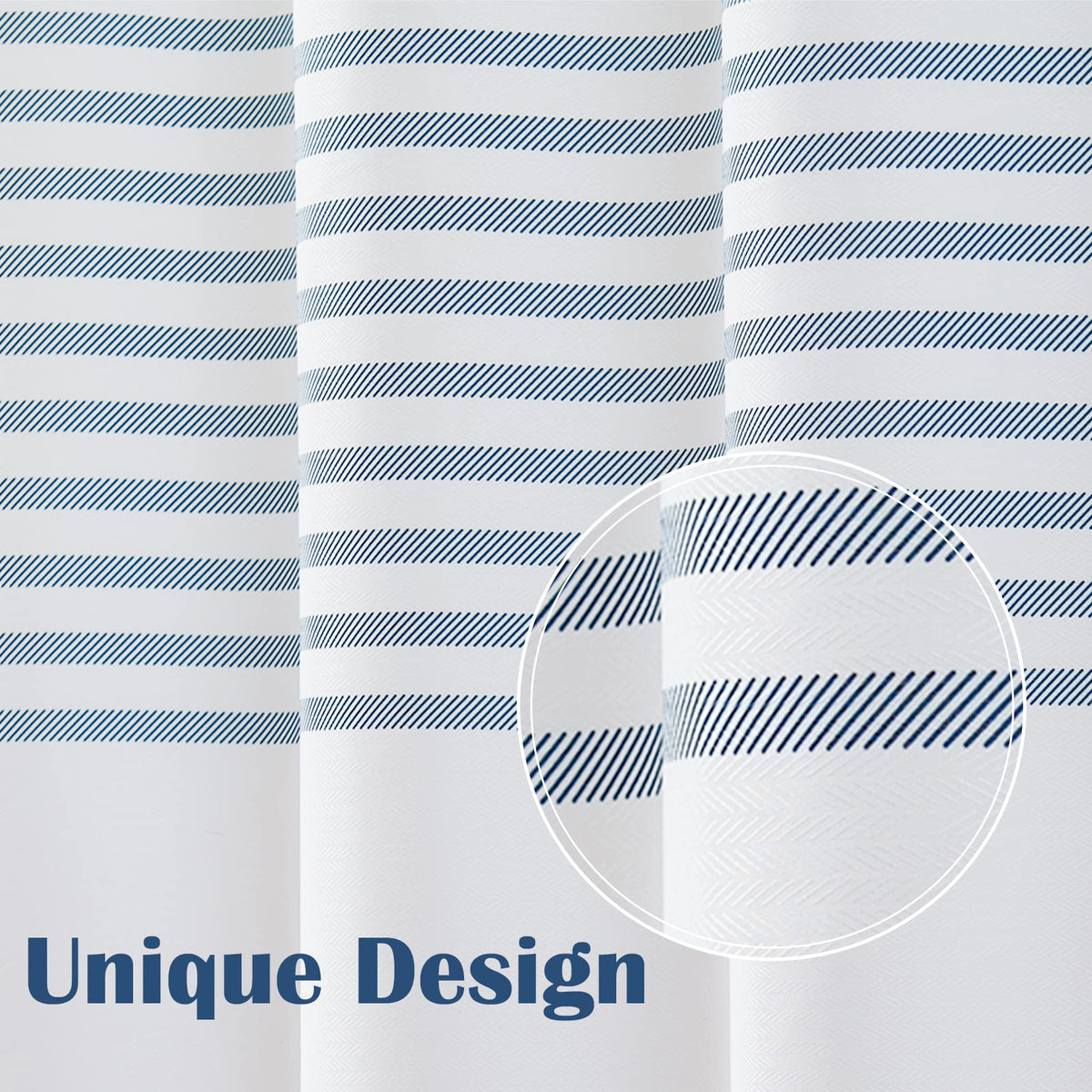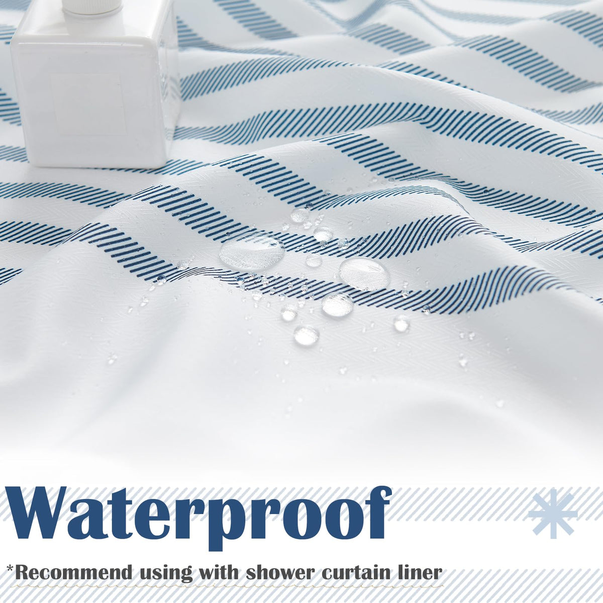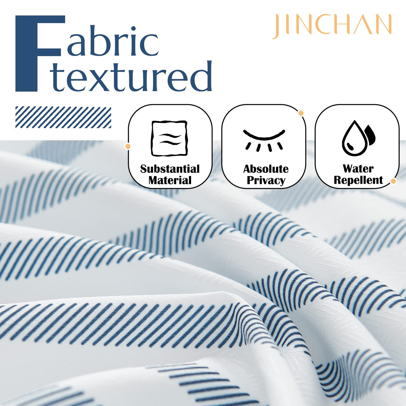 Q: Is the jinchan Blue and White Striped Shower Curtain waterproof?A: Yes, the jinchan Blue and White Striped Shower Curtain is made from waterproof fabric, ensuring durability and protection against water splashes in your bathroom.