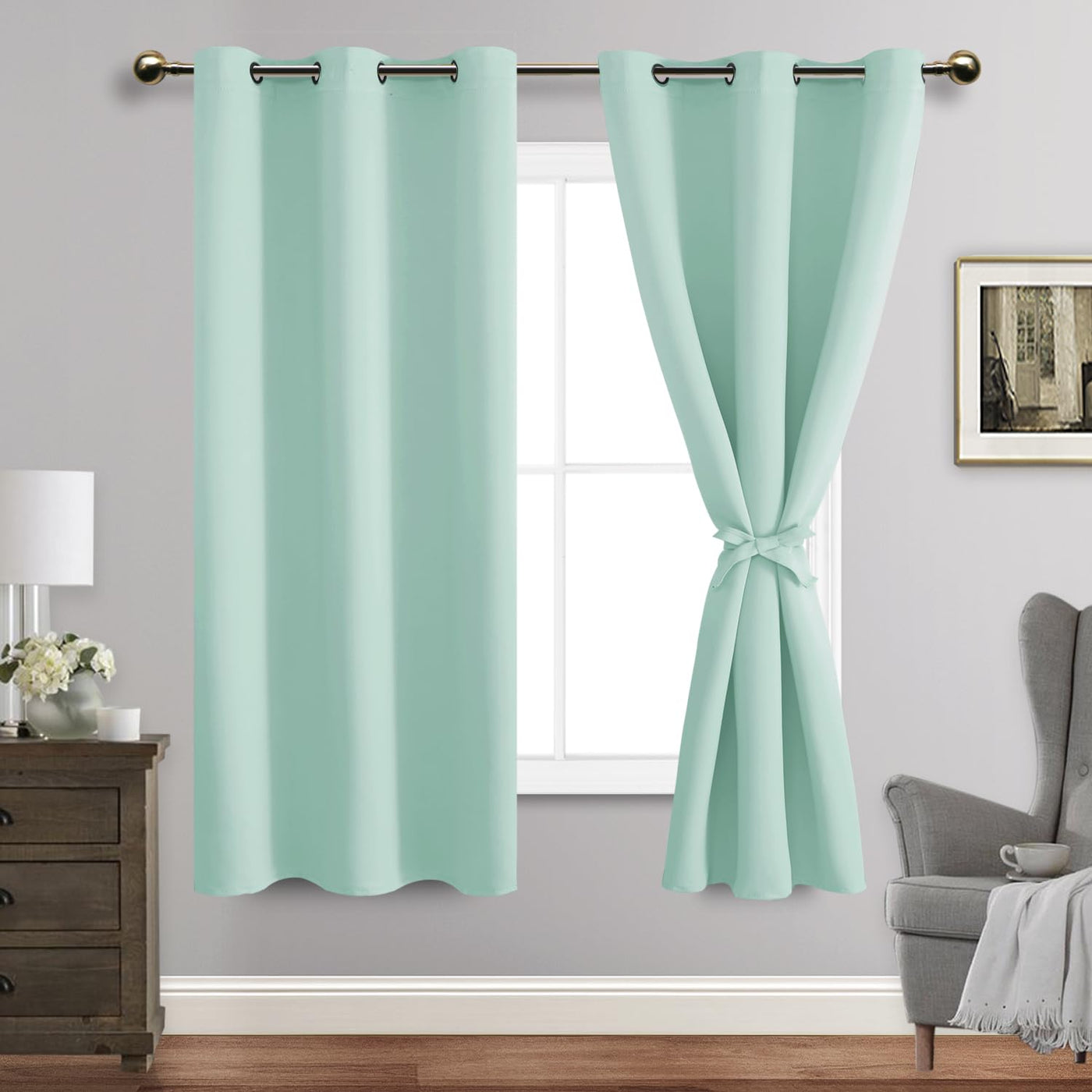 Jiuzhen Aqua Blackout Curtains With Tiebacks Thermal Insulated, Light Blocking And Noise Reducing Grommet Curtains For And Living Room, Set Of 2 Window Curtain Panels, 42 X 63 Inch Length