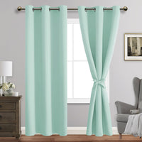 Jiuzhen Aqua Blackout Curtains With Tiebacks Thermal Insulated, Light Blocking And Noise Reducing Grommet Curtains For And Living Room, Set Of 2 Window Curtain Panels, 42 X 84 Inch Length