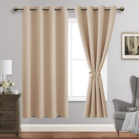 Jiuzhen Beige Blackout Curtains With Tiebacks Thermal Insulated, Light Blocking And Noise Reducing Grommet Curtains For Bedroom And Living Room, Set Of 2 Window Curtain Panels, 52 X 63 Inch Length
