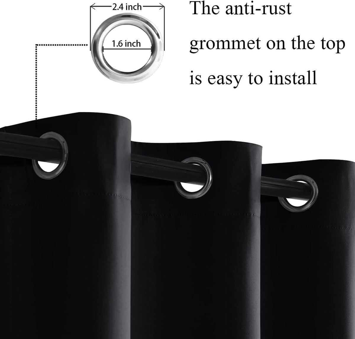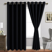 Jiuzhen Black Blackout Curtains With Tiebacks - Thermal Insulated, Light Blocking And Noise Reducing Grommet Curtains For Bedroom And Living Room, Set Of 2 Window Curtain Panels, 60 X 96 Inch Length