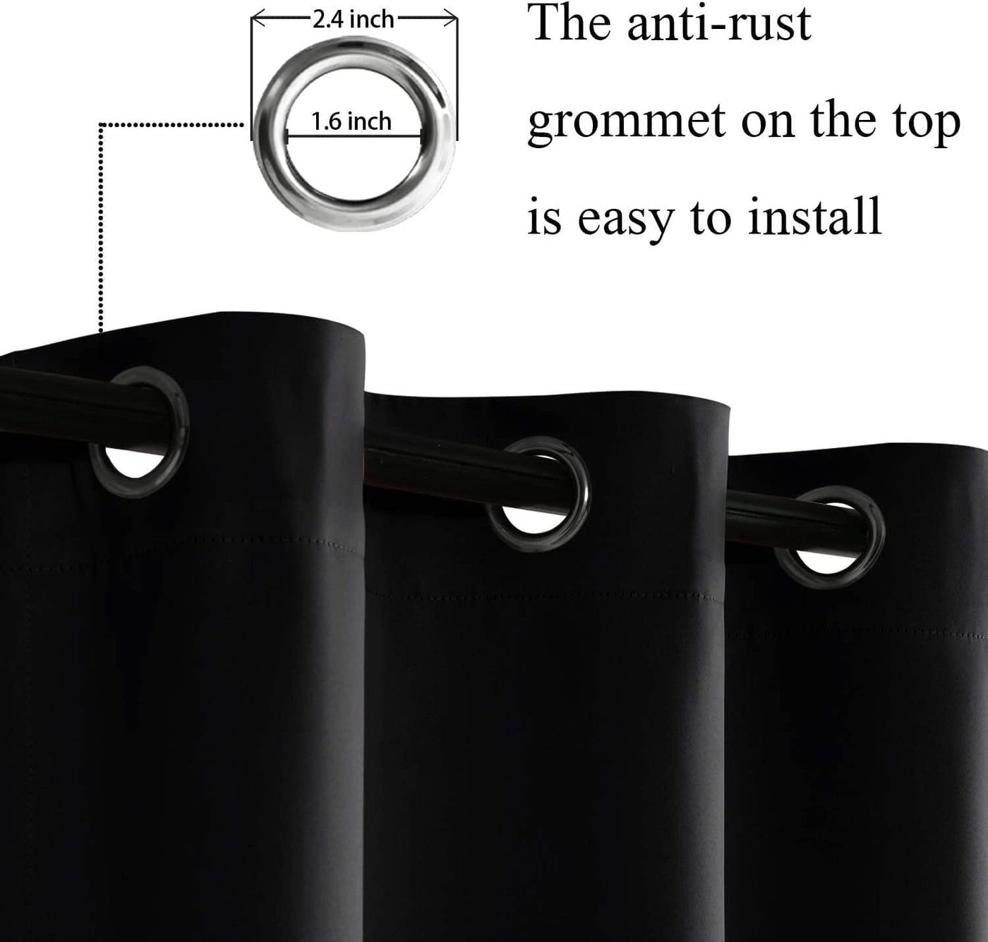 Jiuzhen Black Blackout Curtains With Tiebacks - Thermal Insulated, Light Blocking And Noise Reducing Grommet Curtains For Bedroom And Living Room, Set Of 2 Window Curtain Panels, 70 X 96 Inch Length