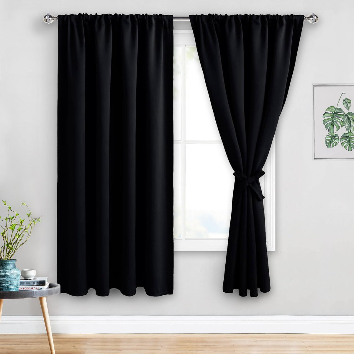 Jiuzhen Black Out Curtains 63 Inch Long - Thermal Insulated Room Darkening Noise Reducing Curtains With Tiebacks, Blackout Curtains For Bedroom Living Room, 2 Panels, 52 X 63 Inch, Black
