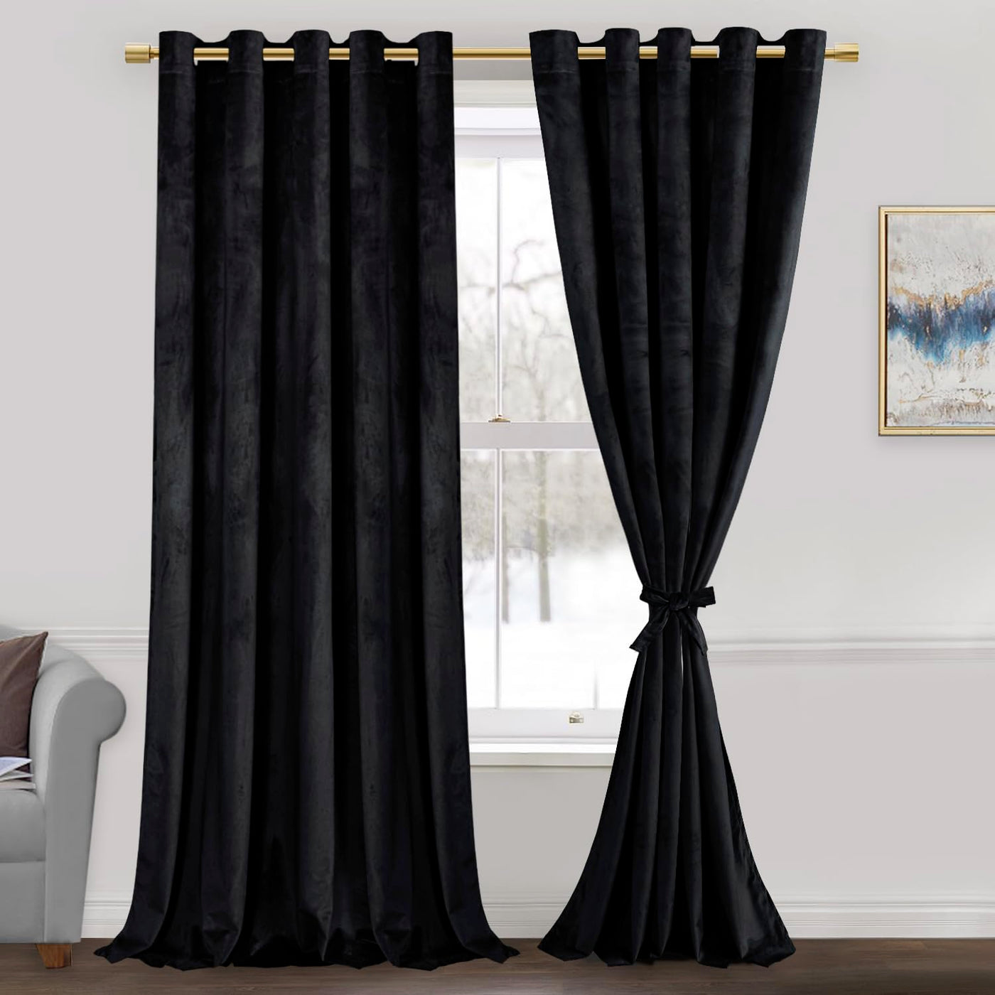 Jiuzhen Black Velvet Curtains 108 Inches Blackout Curtains For Living Room - Privacy Protect Room Darkening Grommet Thick Velvet