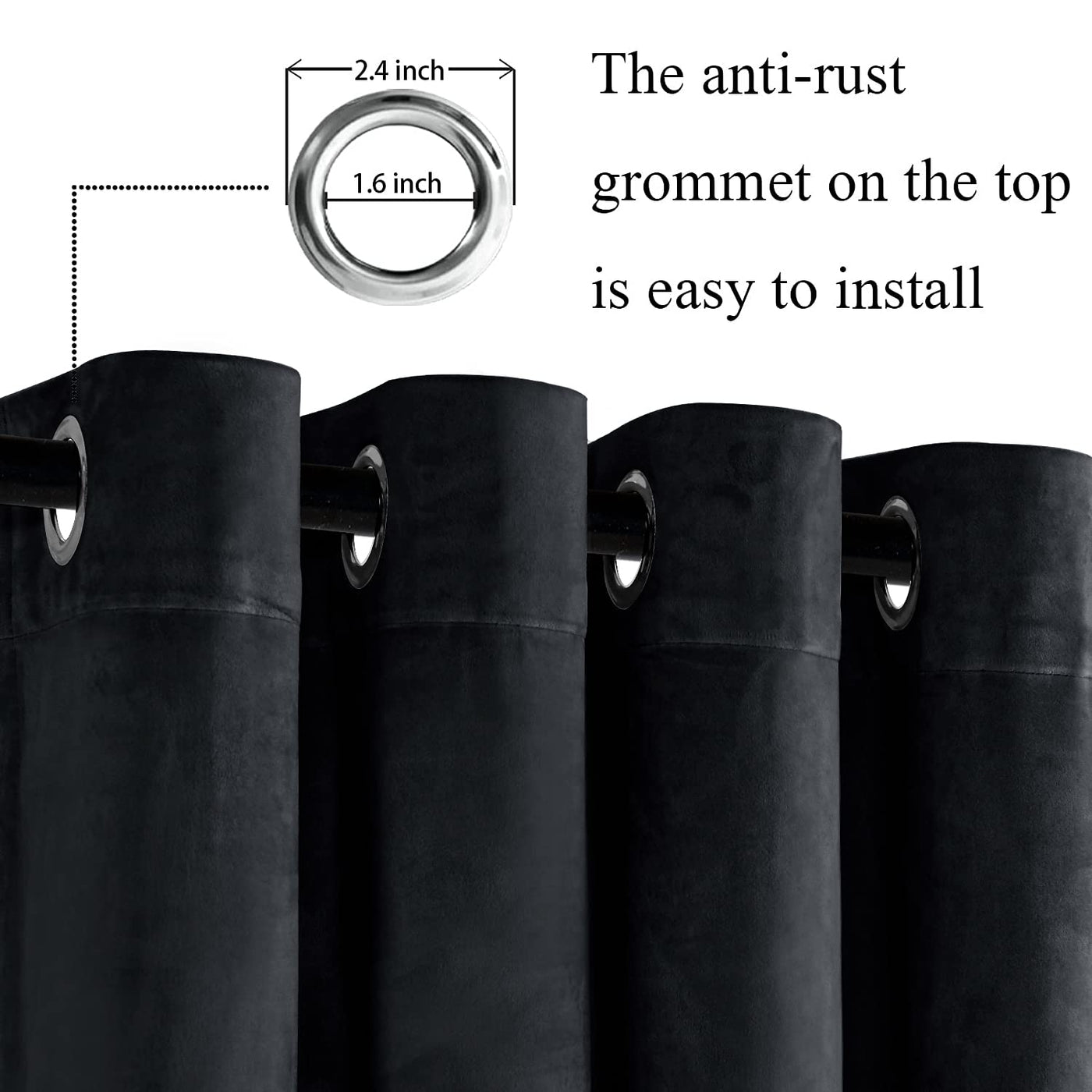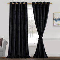 Jiuzhen Black Velvet Curtains 108 Inches For Living Room - Thermal Insualted Room Darkening Grommet Thick Velvet Window Drapes For Bedroom/Dining Room, Set Of 2 With Tiebacks, W70 X L108