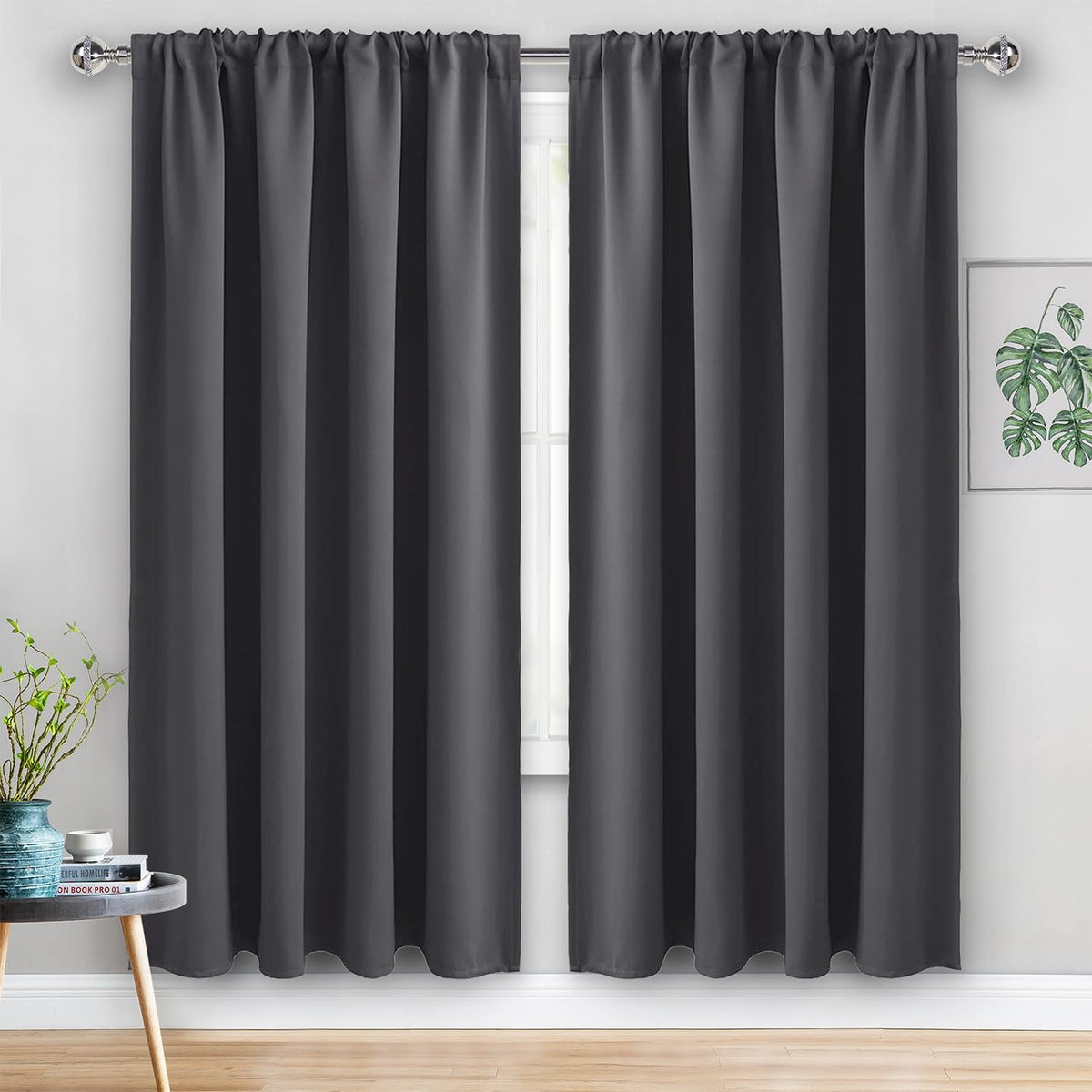 Jiuzhen Blackout Curtains For Bedroom - 60 Inch Extra Wide Thermal Insulated Room Darkening Privacy Soundproof Curtains For Living Room/Dorm Room, Set Of 2 Panels, 60 X 72 Inches, Dark Grey