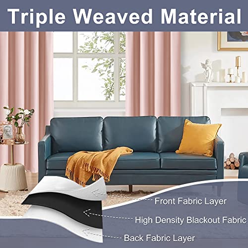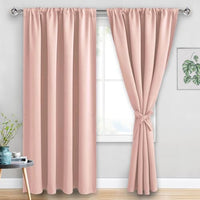 Jiuzhen Blackout Curtains For Bedroom - 60 Inch Extra Wide Thermal Insulated Room Darkening Privacy Soundproof Curtains For Living Room, Set Of 2 Panels With Tiebacks, 60 X 84 Inches, Blush Pink