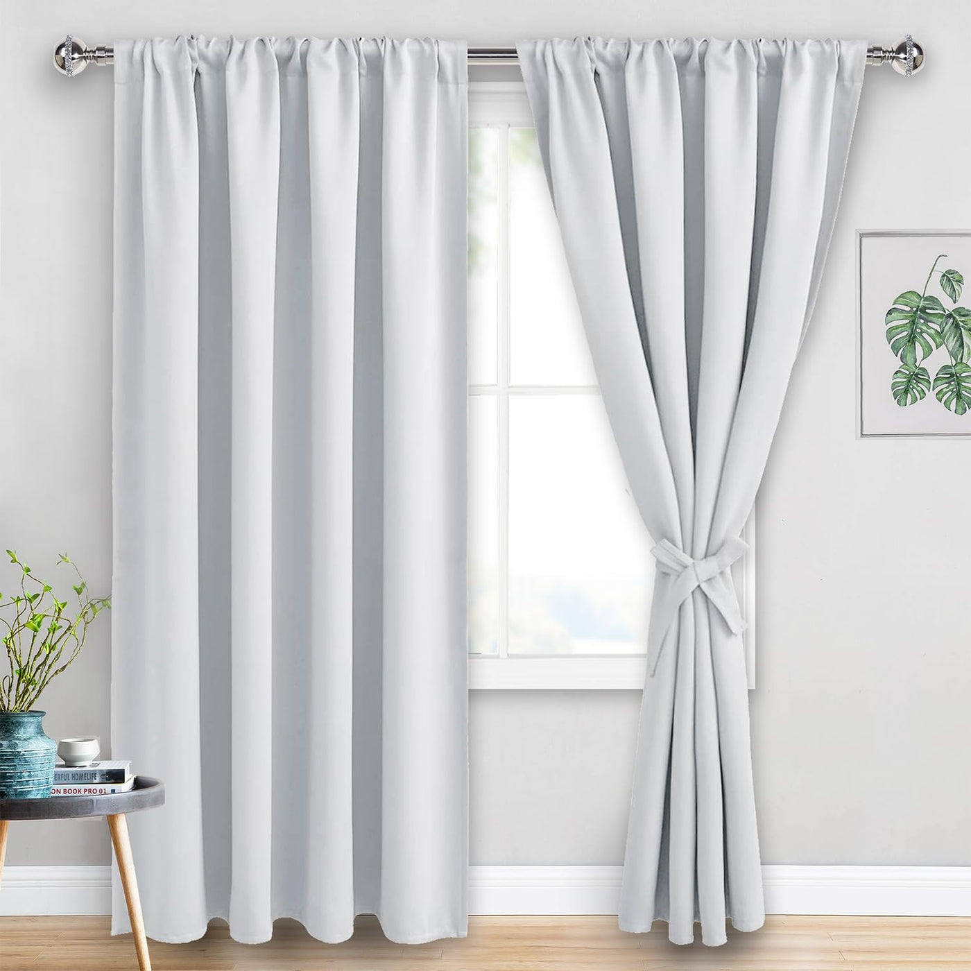 Jiuzhen Blackout Curtains For Bedroom - 60 Inch Extra Wide Thermal Insulated Room Darkening Privacy Soundproof Curtains For Living Room, Set Of 2 Panels With Tiebacks, 60 X 84 Inches, Greyish White