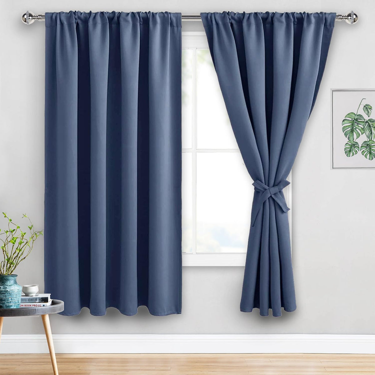 Jiuzhen Blackout Curtains For Bedroom - 60 Inch Wide Thermal Insulated Room Darkening Privacy Soundproof Curtains For Living Room, Set Of 2 Panels With Tiebacks, 60 X 63 Inches, Dusty Blue