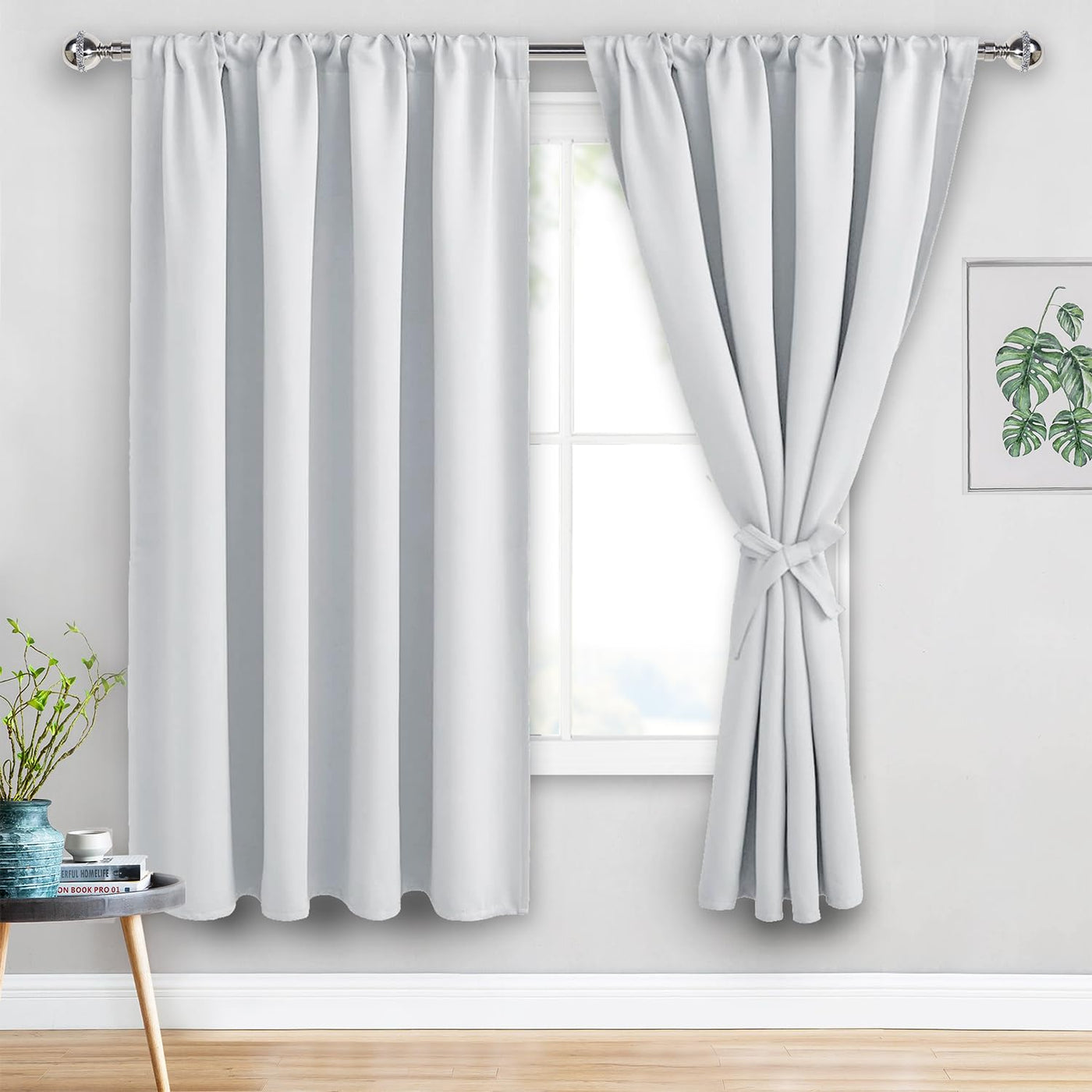 Jiuzhen Blackout Curtains For Bedroom - 70 Inch Extra Wide Thermal Insulated Room Darkening Privacy Soundproof Curtains For Living Room, Set Of 2 Panels With Tiebacks, 70 X 63 Inches, Greyish White