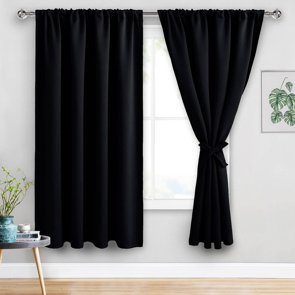 Jiuzhen Blackout Curtains For Bedroom - 70 X 63 Inch Extra Wide Privacy Assured Thermal Insulated Room Darkening Sliding Door Curtains For Living Room, Set Of 2 Panels With Tiebacks, Black