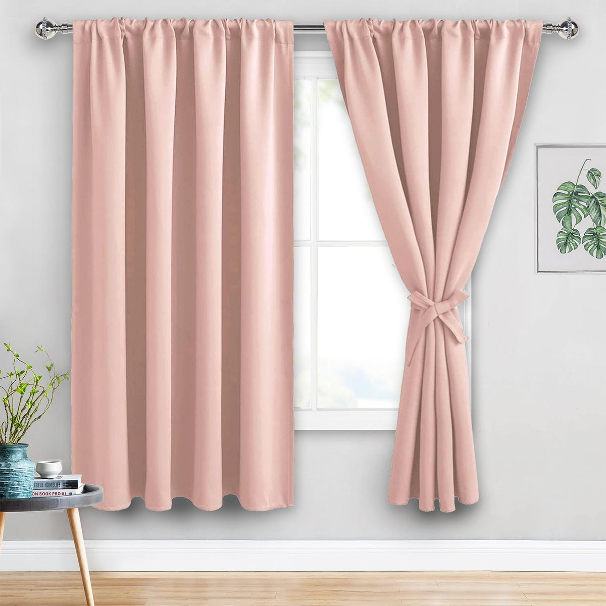 Jiuzhen Blackout Curtains For Bedroom - 70 X 63 Inch Extra Wide Privacy Assured Thermal Insulated Room Darkening Sliding Door Curtains For Living Room, Set Of 2 Panels With Tiebacks, Blush Pink