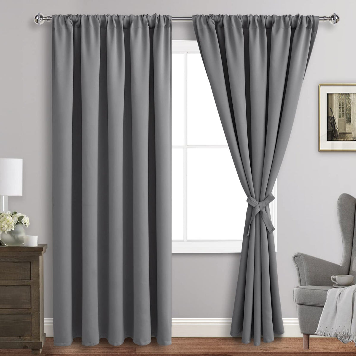 Jiuzhen Blackout Curtains For Bedroom - 70 X 84 Inch Extra Wide Privacy Assured Thermal Insulated Room Darkening Room Divider Curtain Cover For Living Room, Set Of 2 Panels With Tiebacks, Light Grey