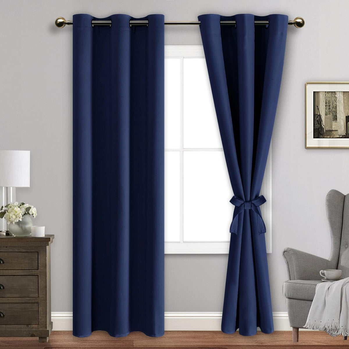 Jiuzhen Blackout Curtains For Bedroom - Light Blocking And Noise Reducing Grommet Room Darkening Curtains 84 Inch Length 2 Panels Set (38 X 84 Inch, Navy Blue)