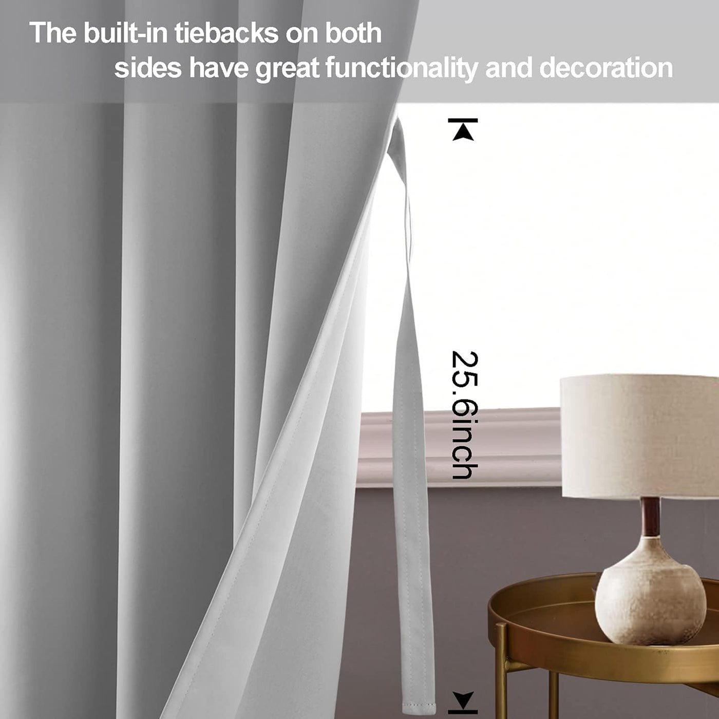 JIUZHEN Blackout Curtains with Tiebacks are made of premium quality triple weaved microfiber blackout fabric which can block most of harmful sunlights and UV rays. Our room darkening curtains adopt an innovative design. The tiebacks are stitched to the curtains and combined with the curtains, thereby reducing your additional cost of purchasing tiebacks and eliminating the trouble that you sometimes cannot find tiebacks.