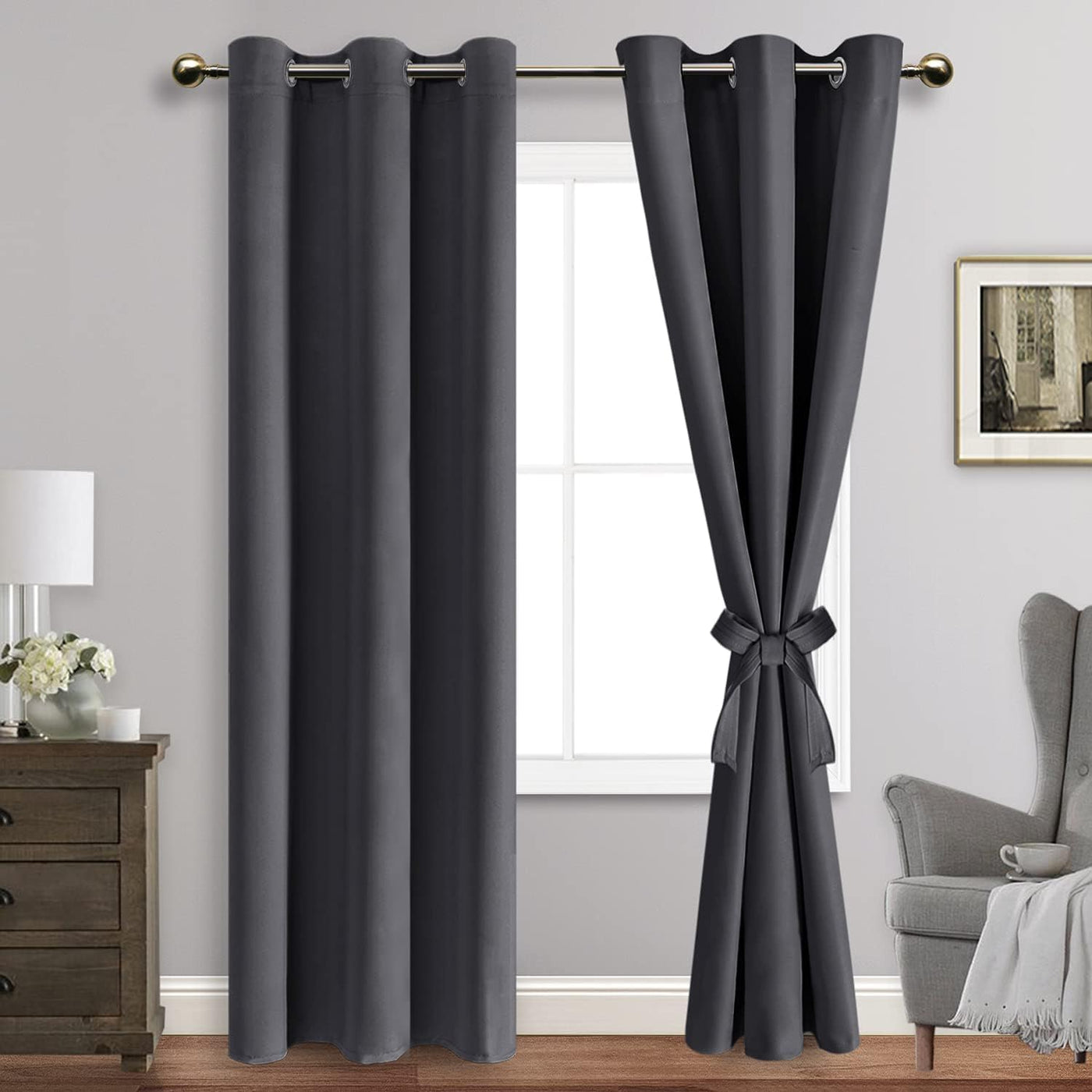JIUZHEN Blackout Curtains with Tiebacks are made of premium quality triple weaved microfiber blackout fabric which can block most of harmful sunlights and UV rays. Our room darkening curtains adopt an innovative design. The tiebacks are stitched to the curtains and combined with the curtains, thereby reducing your additional cost of purchasing tiebacks and eliminating the trouble that you sometimes cannot find tiebacks.
