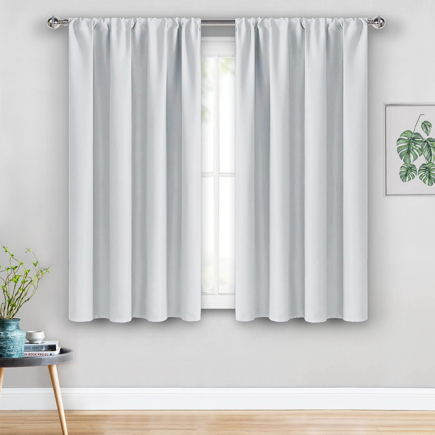 Jiuzhen Blackout Curtains For Bedroom - Thermal Insulated Noise Reducing Privacy Short Curtain For Living Room, Set Of 2 Panels With Tiebacks, 52 X 45 Inches Long, Greyish White