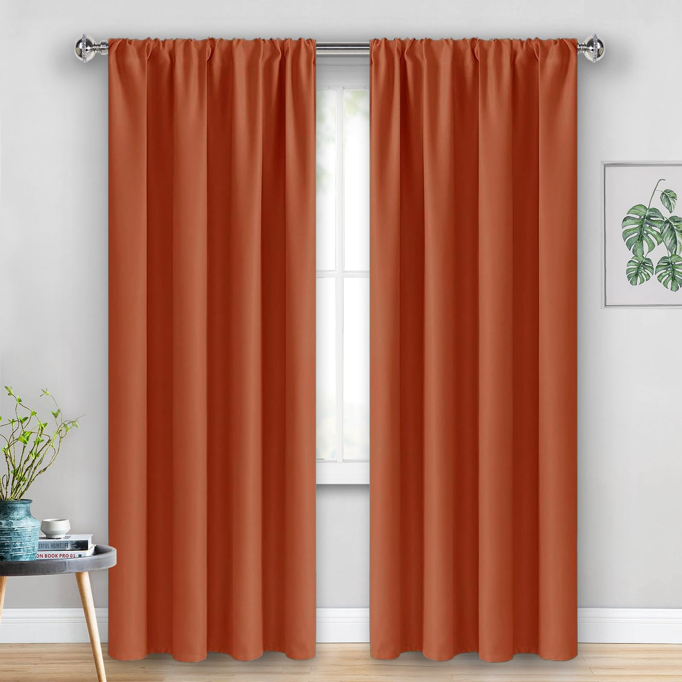 Jiuzhen Blackout Curtains For Bedroom - Thermal Insulated,Noise Reducing Room Darkening Privacy Rod Pocket Drapes For Living Room, Set Of 2 Panels With Tiebacks, 38 X 84 Inches Long,Burnt Ochre