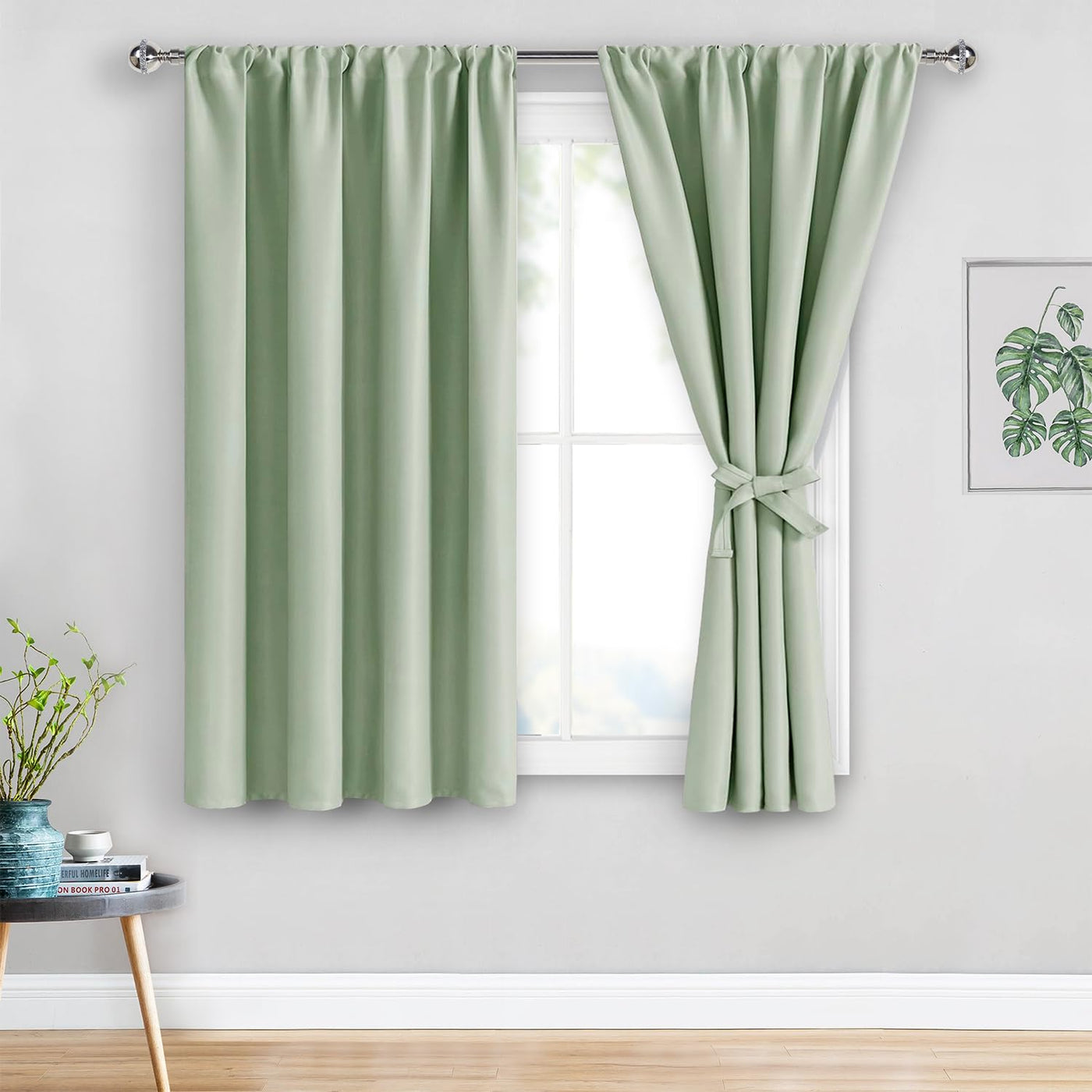 Jiuzhen Blackout Curtains For Bedroom?Thermal Insulated,Noise Reducing Room Darkening Privacy Rod Pocket Drapes For Living Room, Set Of 2 Panels With Tiebacks, 42 X 54 Inch Long, Light Green