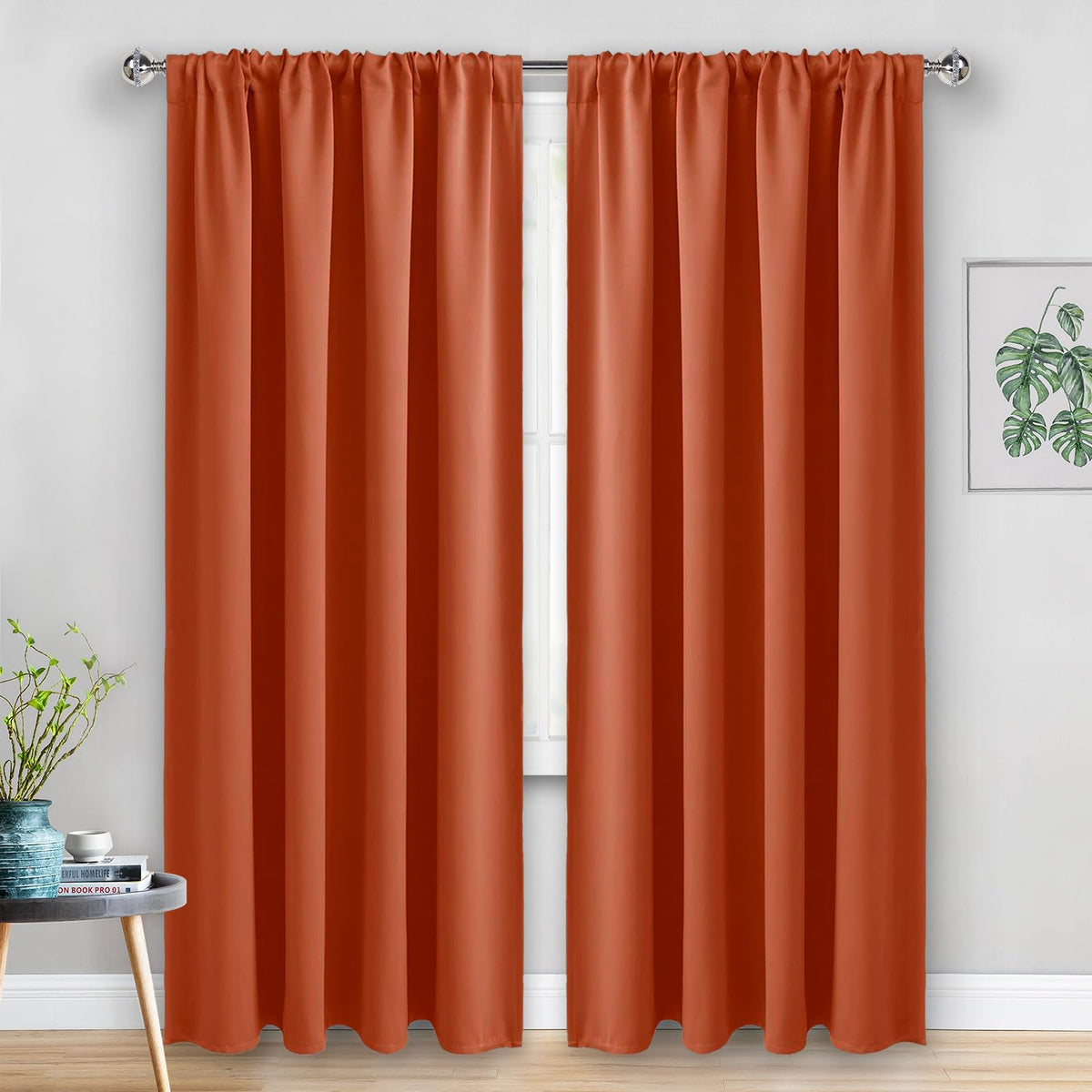 Jiuzhen Blackout Curtains For Bedroom - Thermal Insulated,Noise Reducing Room Darkening Privacy Rod Pocket Drapes For Living Room, Set Of 2 Panels With Tiebacks, 52 X 84 Inches Long,Burnt Ochre