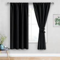Jiuzhen Blackout Curtains For Bedroom?Thermal Insulated,Noise Reducing Room Darkening Rod Pocket Curtains For Living Room, Set Of 2 Panels With Tiebacks, 42 X 63 Inch Long, Black