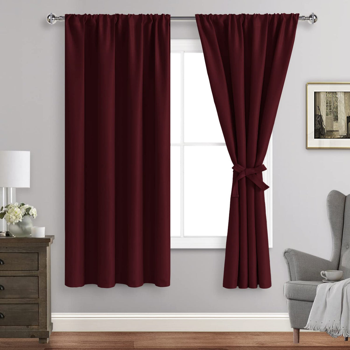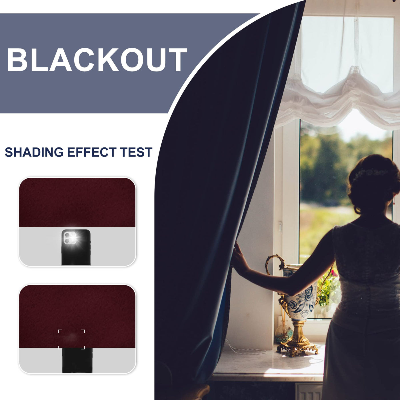 Jiuzhen Blackout Curtains For Bedroom?Thermal Insulated,Noise Reducing Room Darkening Rod Pocket Curtains For Living Room, Set Of 2 Panels With Tiebacks, 42 X 63 Inch Long,Burgundy
