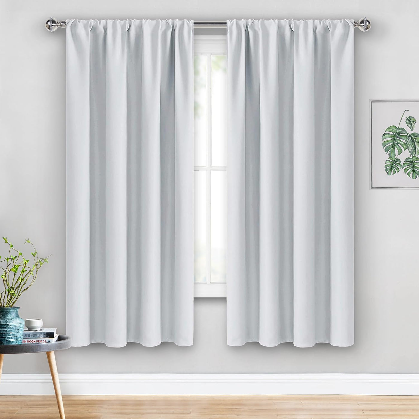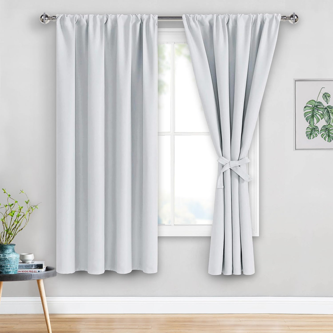 Jiuzhen Blackout Curtains For Bedroom?Thermal Insulated,Noise Reducing Room Darkening Rod Pocket Curtains For Living Room, Set Of 2 Panels With Tiebacks, 42 X 63 Inch Long, Greyish White