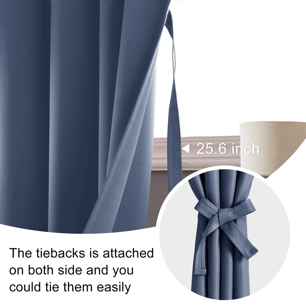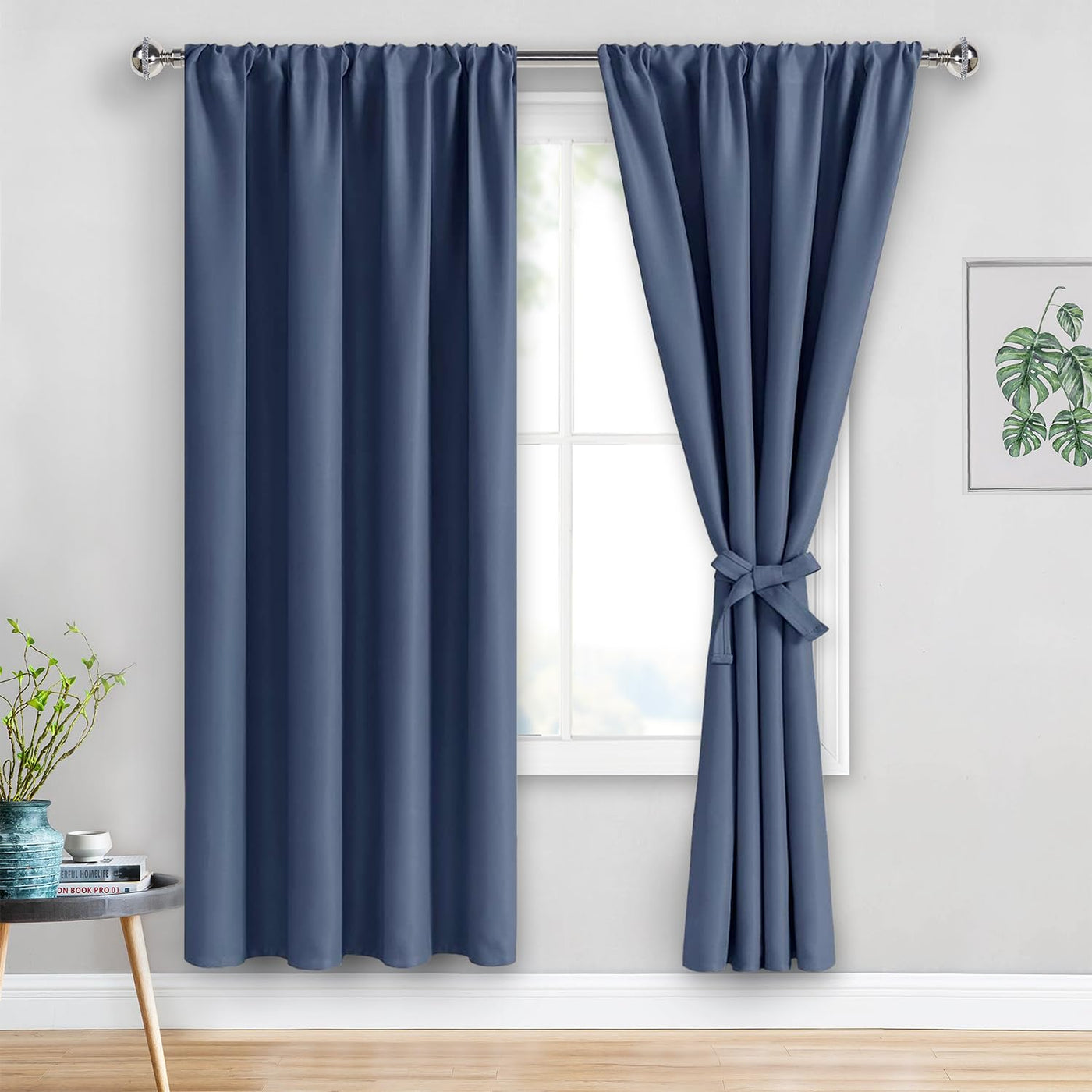 Jiuzhen Blackout Curtains For Bedroom?Thermal Insulated,Noise Reducing Room Darkening Rod Pocket Curtains For Living Room, Set Of 2 Panels With Tiebacks, 42 X 72 Inch Long, Dusty Blue