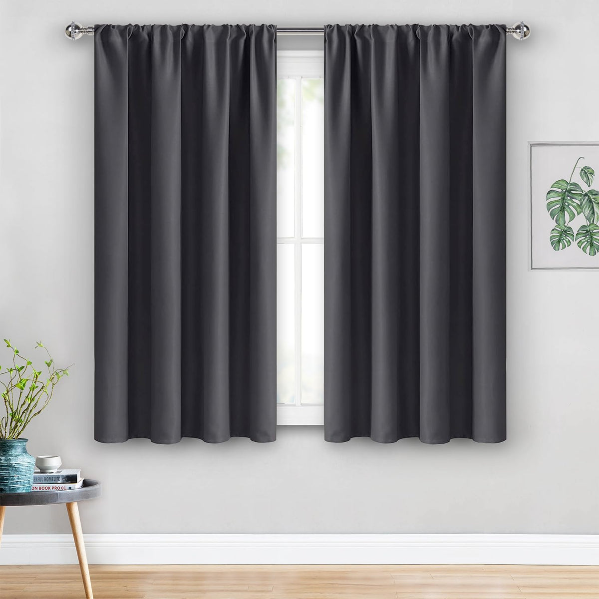 Jiuzhen Blackout Curtains For Bedroom - Thermal Insulated Room Darkening Noise Reducing, 52 X 45 Inch Length Curtains For Living Room, Set Of 2 Panels With Tiebacks, Dark Grey