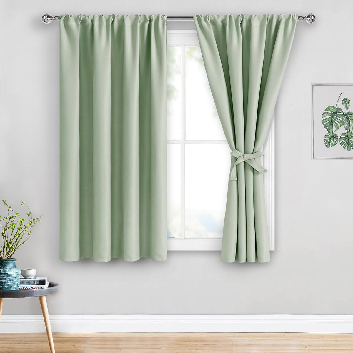 Jiuzhen Blackout Curtains For Bedroom - Thermal Insulated Room Darkening Noise Reducing, 52 X 45 Inch Length Curtains For Living Room, Set Of 2 Panels With Tiebacks, Light Green