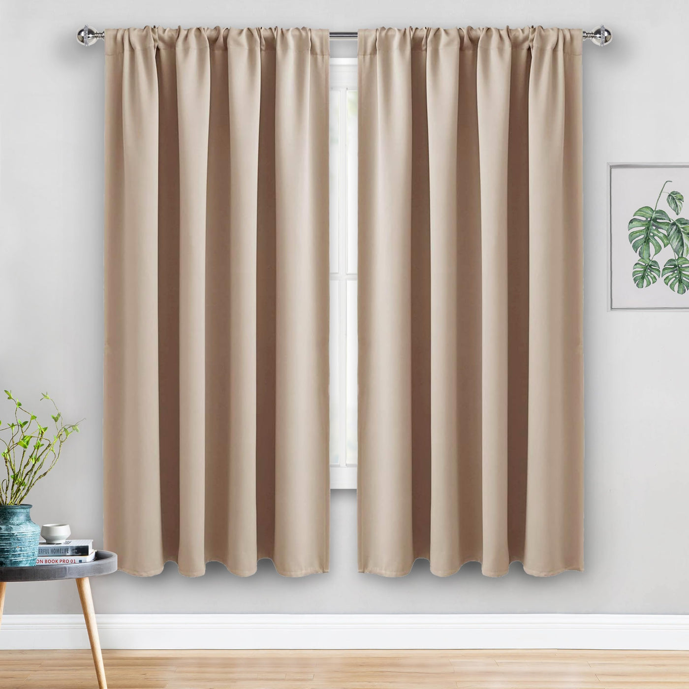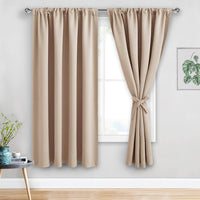 Jiuzhen Blackout Curtains For Bedroom - Thermal Insulated Room Darkening Noise Reducing, 52 X 63 Inch Length Curtains For Living Room, Set Of 2 Panels With Tiebacks, Beige