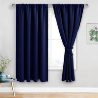 Jiuzhen Blackout Curtains For Bedroom - Thermal Insulated Room Darkening Noise Reducing, 52 X 63 Inch Length Curtains For Living Room, Set Of 2 Panels With Tiebacks, Navy Blue