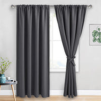 Jiuzhen Blackout Curtains For Bedroom - Thermal Insulated Room Darkening Noise Reducing, 52 X 84 Inch Length Curtains For Living Room, Set Of 2 Panels With Tiebacks, Dark Grey
