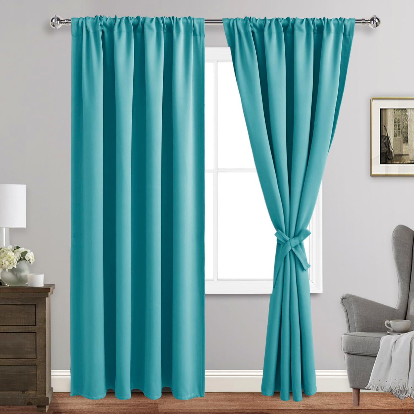 Jiuzhen Blackout Curtains For Bedroom - Thermal Insulated Room Darkening Noise Reducing, 52 X 84 Inch Length Curtains For Living Room, Set Of 2 Panels With Tiebacks, Turquoise