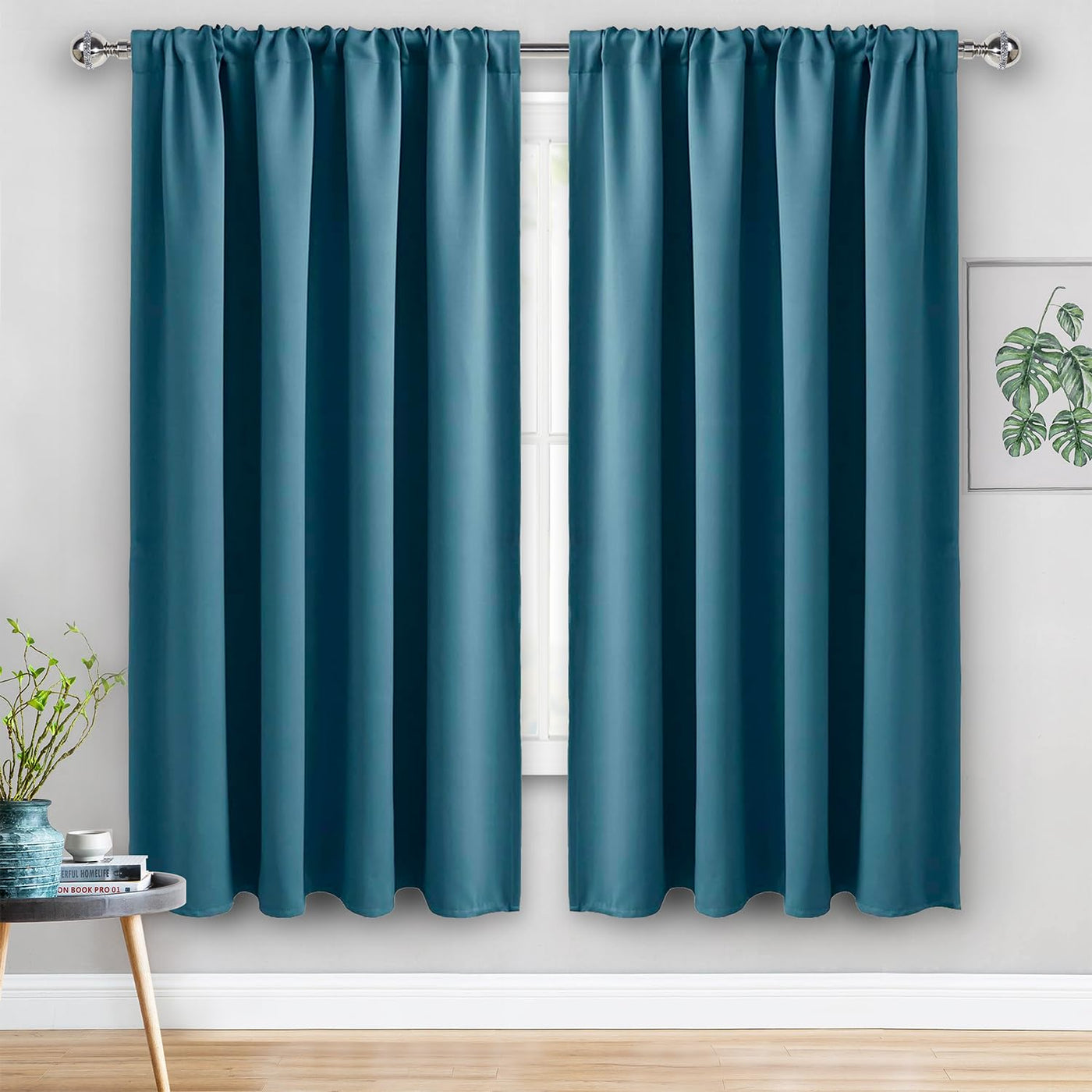 Jiuzhen Blackout Curtains For Bedroom - Thermal Insulated Room Darkening Noise Reducing, 60 X 63 Inch Length Curtains For Living Room, Set Of 2 Panels With Tiebacks, Stone Blue