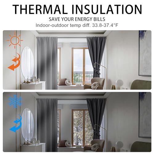 Jiuzhen Blackout Curtains For Bedroom - Thermal Insulated Room Darkening Rod Pocket Curtains For Living Room, Set Of 2 Panels With Tiebacks, 38 X 54 Inches Long, Dark Grey