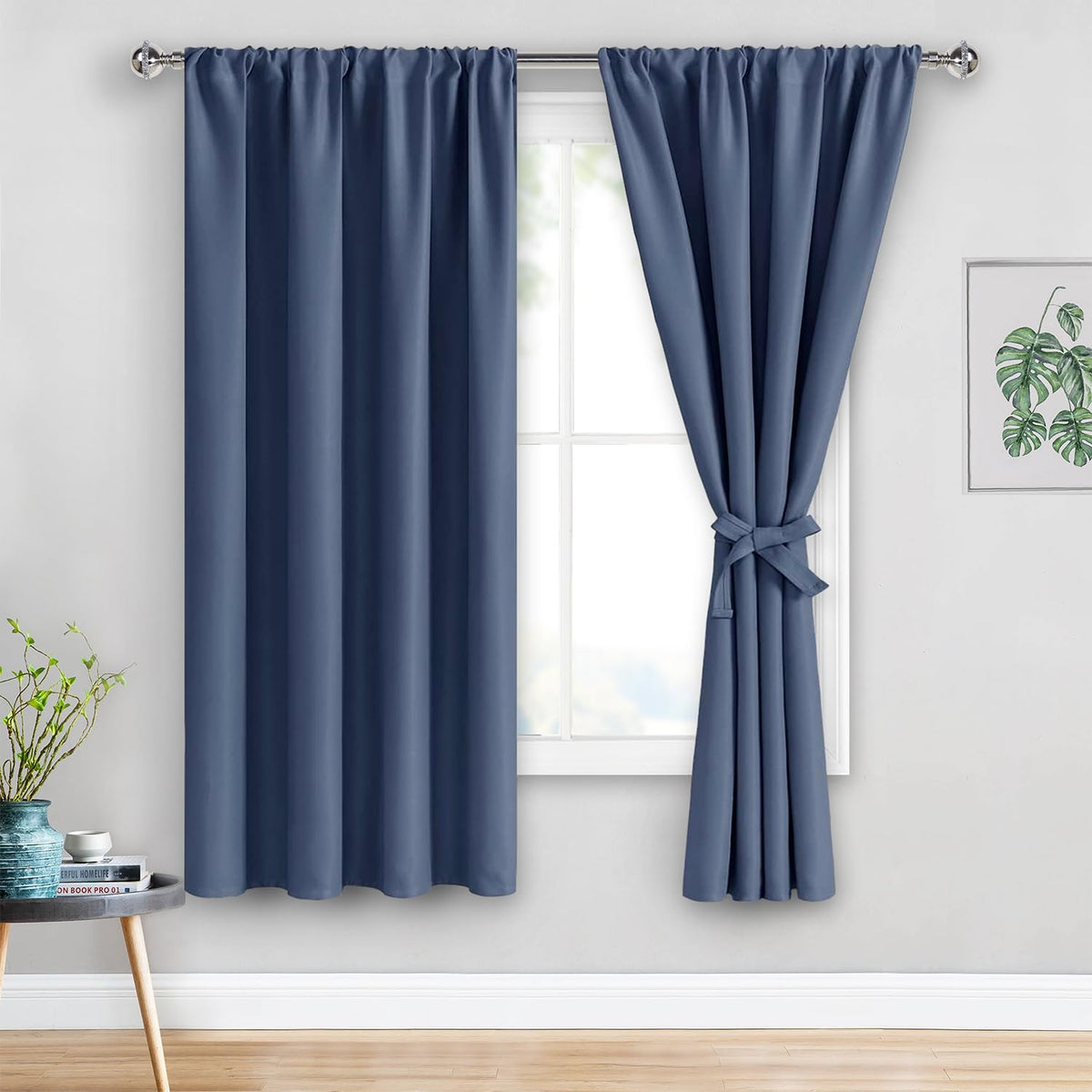 Jiuzhen Blackout Curtains For Bedroom - Thermal Insulated Room Darkening Rod Pocket Curtains For Living Room, Set Of 2 Panels With Tiebacks, 38 X 63 Inch Length, Dusty Blue