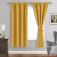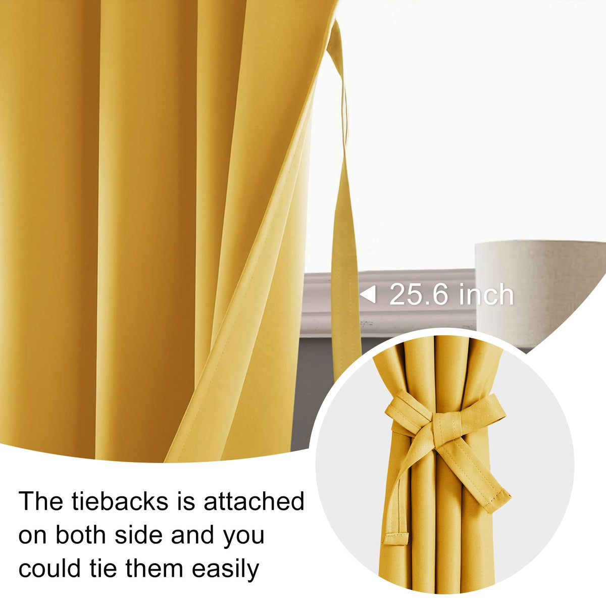 Jiuzhen Blackout Curtains For Bedroom - Thermal Insulated Room Darkening Rod Pocket Curtains For Living Room, Set Of 2 Panels With Tiebacks, 38 X 63 Inch Length, Mustard Yellow