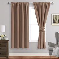 Jiuzhen Blackout Curtains For Bedroom - Thermal Insulated Room Darkening Rod Pocket Curtains For Living Room, Set Of 2 Panels With Tiebacks, 38 X 72 Inch Length, Cappuccino