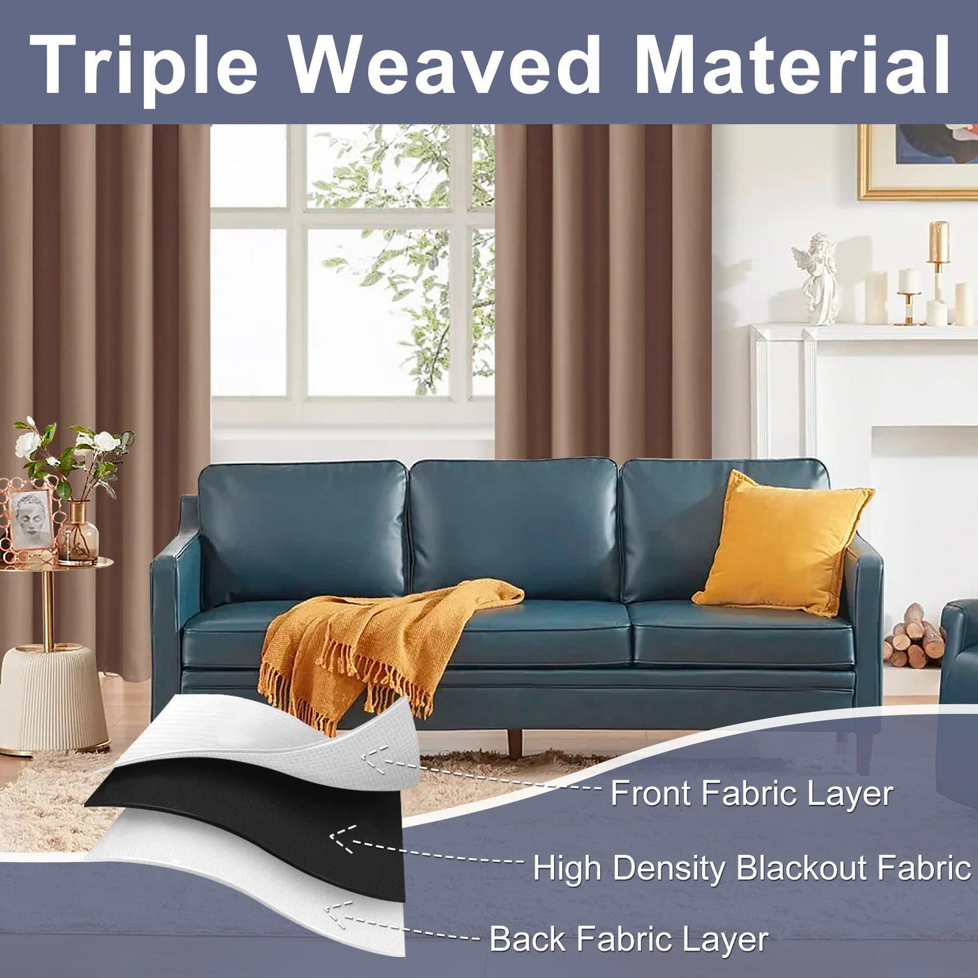 Thermal Insulated & Energy Saving Curtain: Triple weaved technology helps block most of sunlights, Keep you away from the light.