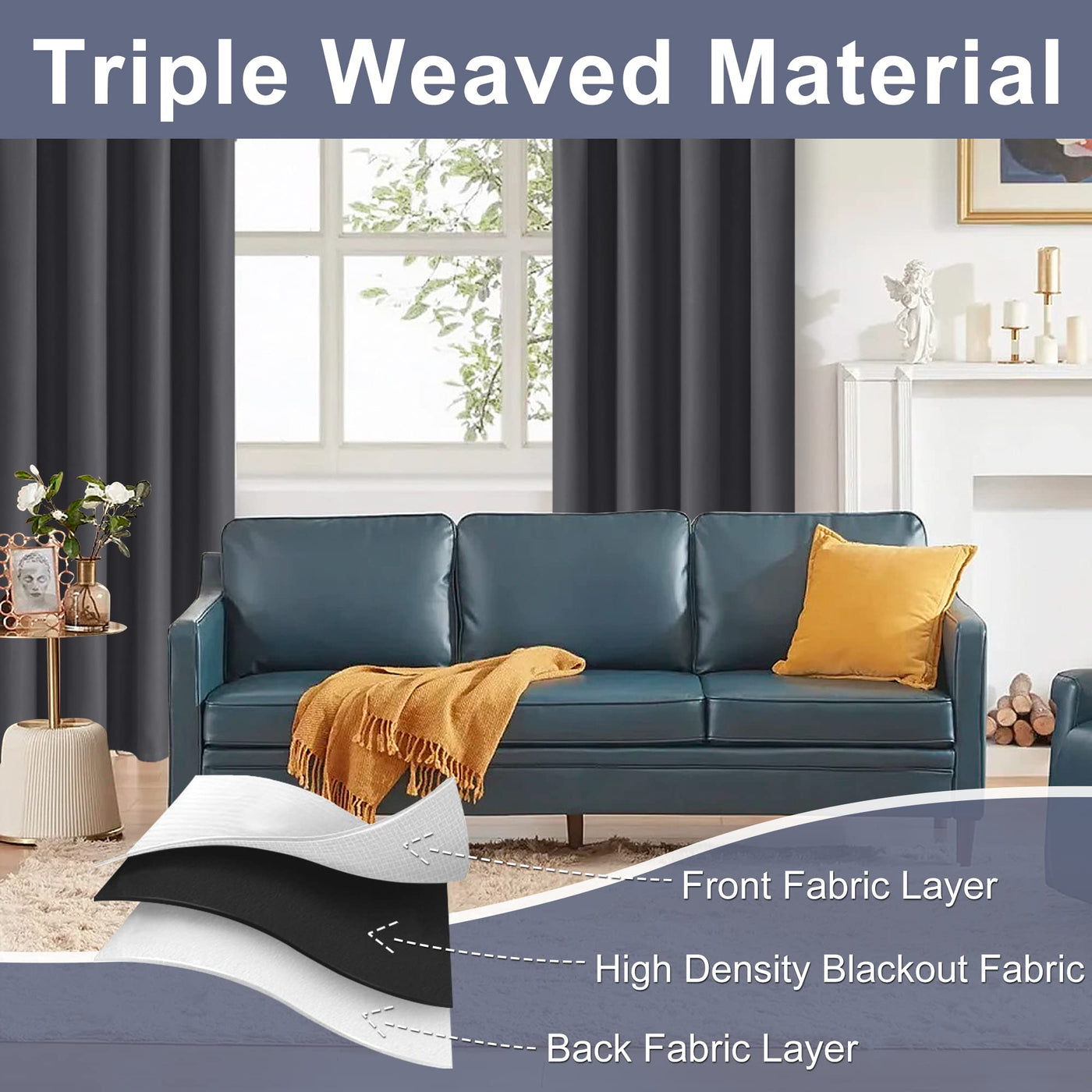 Thermal Insulated & Energy Saving Curtain: Triple weaved technology helps block most of sunlights, Keep you away from the light.