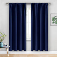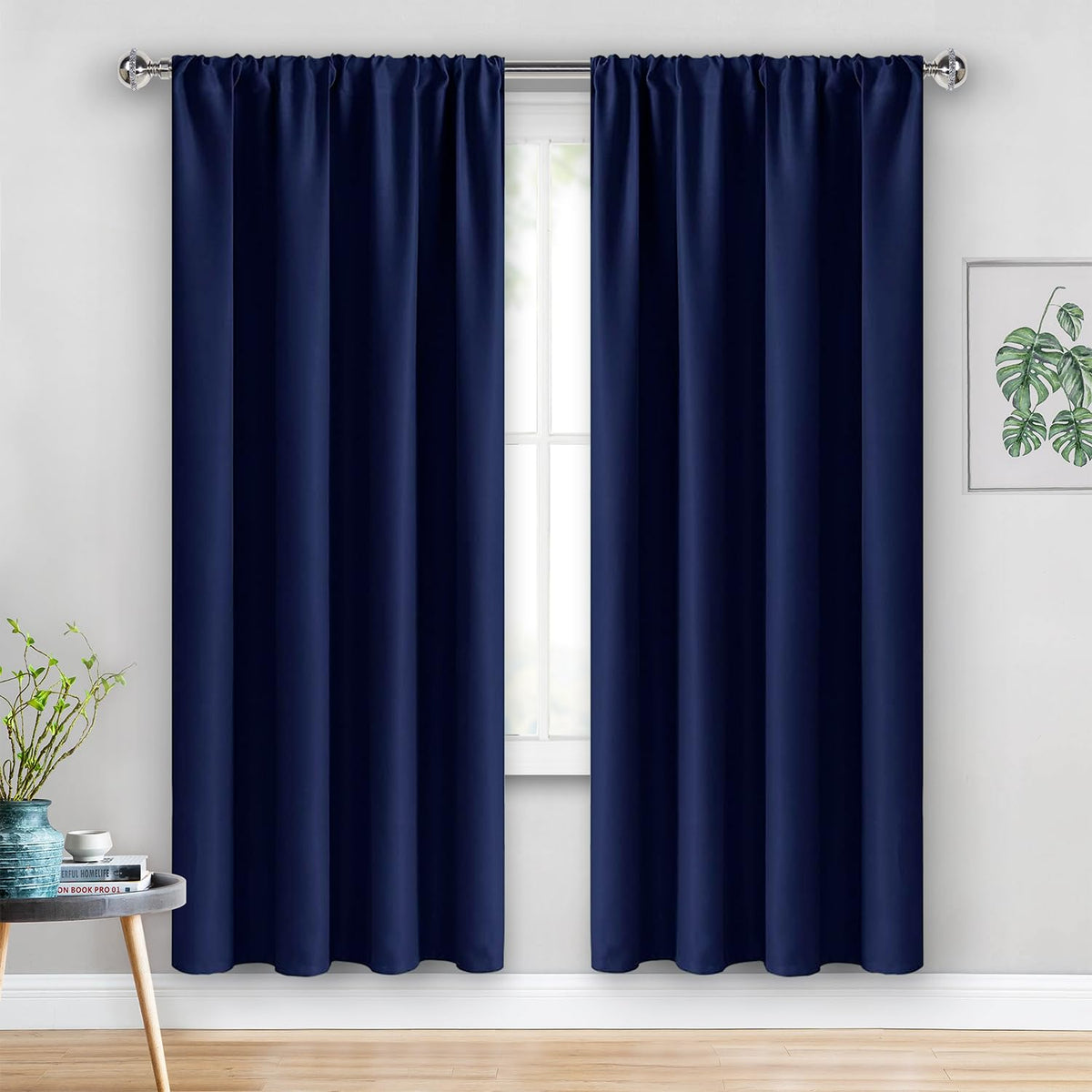 Jiuzhen Blackout Curtains For Bedroom - Thermal Insulated Room Darkening Rod Pocket Curtains For Living Room, Set Of 2 Panels With Tiebacks, 38 X 72 Inch Length, Navy Blue