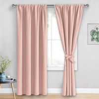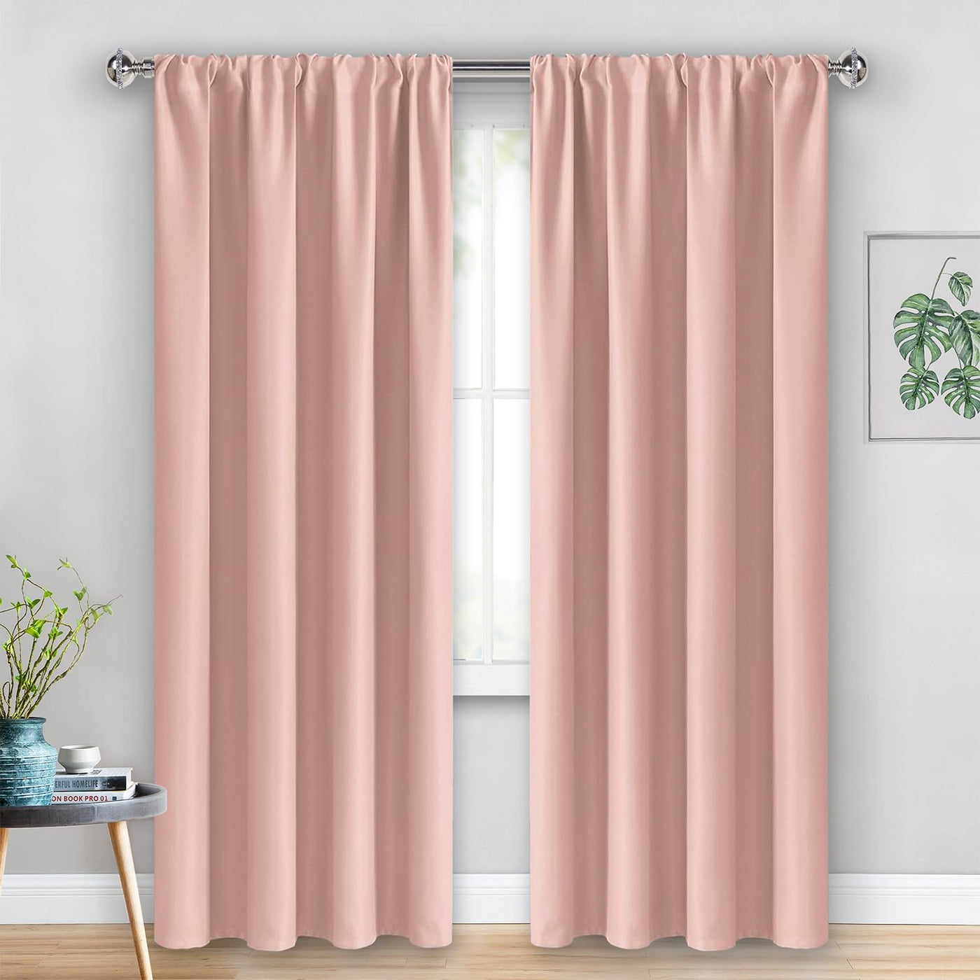 Jiuzhen Blackout Curtains For Bedroom - Thermal Insulated Room Darkening Rod Pocket Curtains For Living Room, Set Of 2 Panels With Tiebacks, 38 X 84 Inch Length, Blush Pink