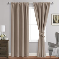 JIUZHEN Blackout Curtains with Tiebacks are made of premium quality triple weaved microfiber blackout fabric which can block most of harmful sunlights and UV rays. Our room darkening curtains adopt an innovative design. The tiebacks are stitched to the curtains and combined with the curtains, thereby reducing your additional cost of purchasing tiebacks and eliminating the trouble that you sometimes cannot find tiebacks.