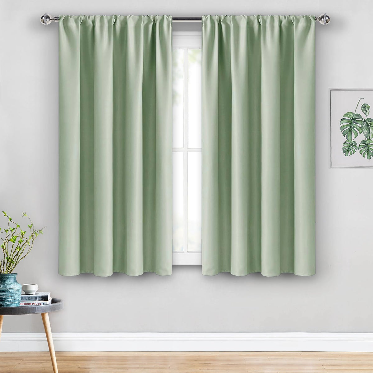 Jiuzhen Blackout Curtains For Bedroom - Thermal Insulated Room Darkening Rod Pocket Curtains For Living Room, Set Of 2 Panels With Tiebacks, 42 X 45 Inch Length, Light Green