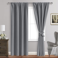 Jiuzhen Blackout Curtains For Bedroom - Thermal Insulated Room Darkening Rod Pocket Curtains For Living Room, Set Of 2 Panels With Tiebacks, 42 X 84 Inch Length, Light Grey