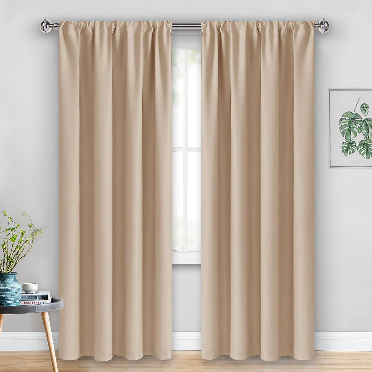 Jiuzhen Blackout Curtains For Bedroom - Thermal Insulated Room Darkening Rod Pocket Curtains For Living Room, Set Of 2 Panels With Tiebacks, 42 X 96 Inch Length, Beige
